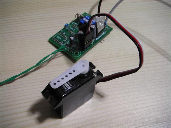 上部の「ラジコン用サーボモーター写真」のサーボモーターは、設定温度以上になると、左回りに回転します。
